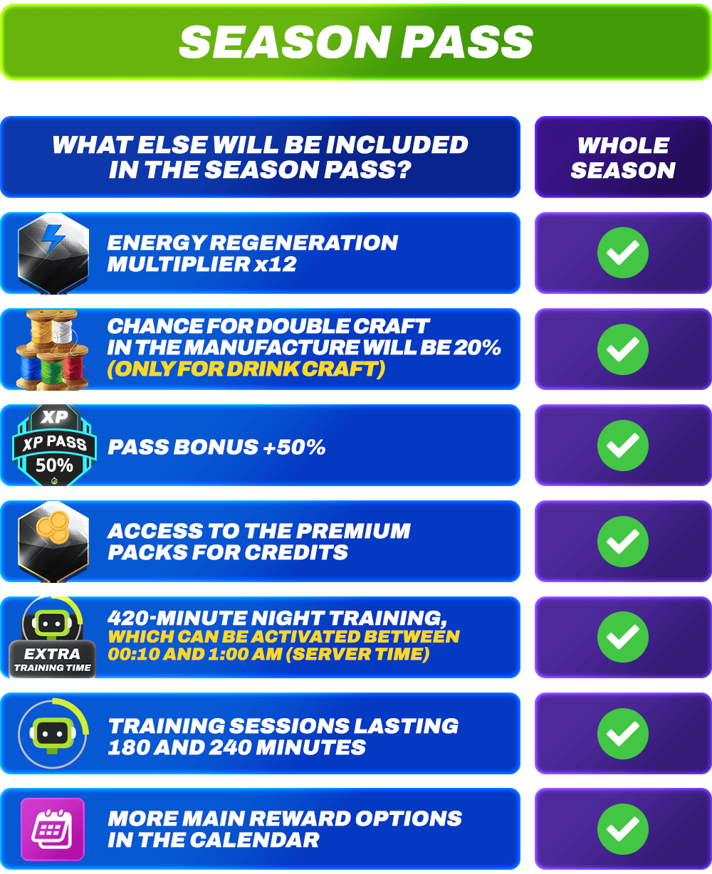 ⚽ The Season Pass is active for the entire season, in parallel with the calendar.