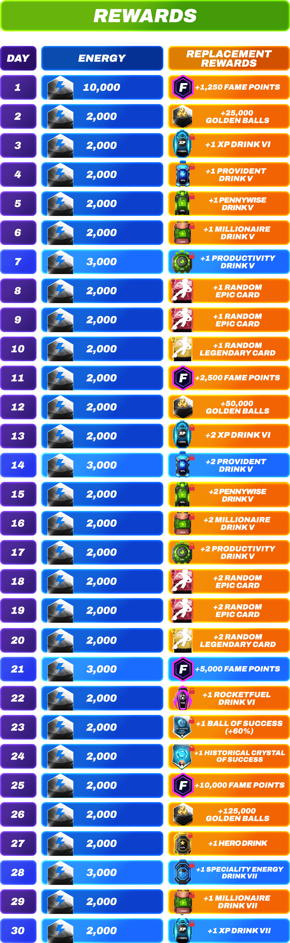 ⚽ If you purchased the Season Pass during the season, you can claim retroactive rewards from each day, provided you completed the calendar challenge on that day.